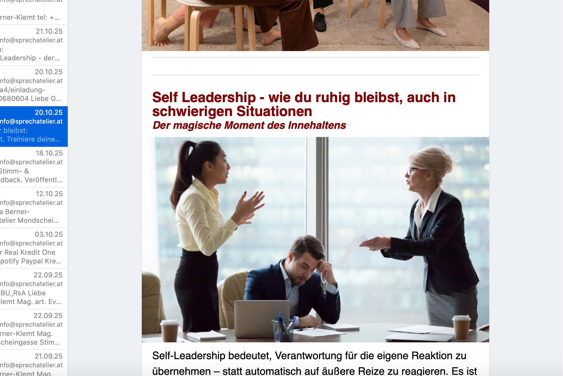 Erhalten Sie aktuelle Termine und Tipps rund um die Themen Körpersprache, Stimme und Sprechen, selbstsicher Auftreten und Kommunikation.
