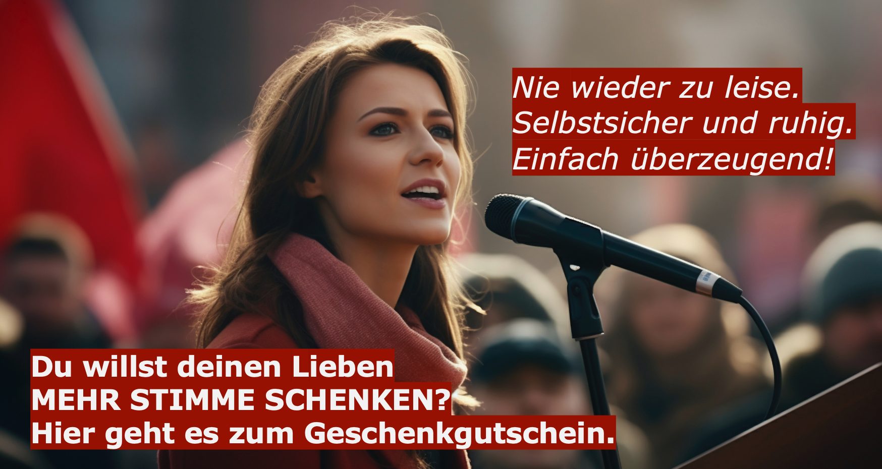 - Ihre persönliche und klangvolle Stimme, die Ihnen die Aufmerksamkeit und die Sympathie Ihrer ZuhörerInnen sichert.