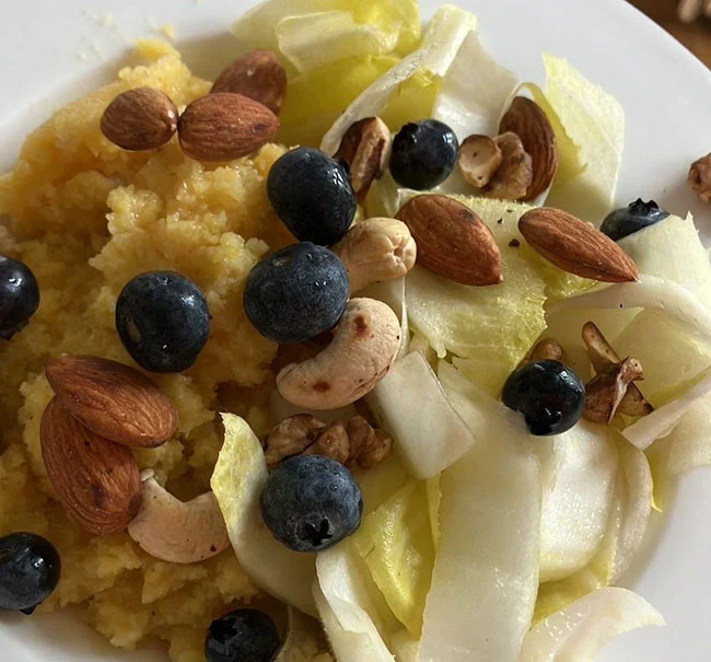 Die letzten 14 Tage habe ich eine Detox-Kur gemacht. Zucker, Gluten und Kaffee weggelassen, 3 x täglich gegessen, nur Gesundes, vor allem Gemüse. Und nichts zwischen diesen drei Mahlzeiten. Ich habe nie Hunger gelitten. Es war leicht. Es ist schön für mich, so zu leben.